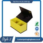Two-piece custom rigid boxes can also be customized with additional features, such as foam inserts, ribbon ties, or magnetic closures, to provide added protection and enhance the overall presentation of the product inside. They are commonly used for high-end products, such as cosmetics, jewellery, and electronics, to create a premium and sophisticated look and feel for the product.